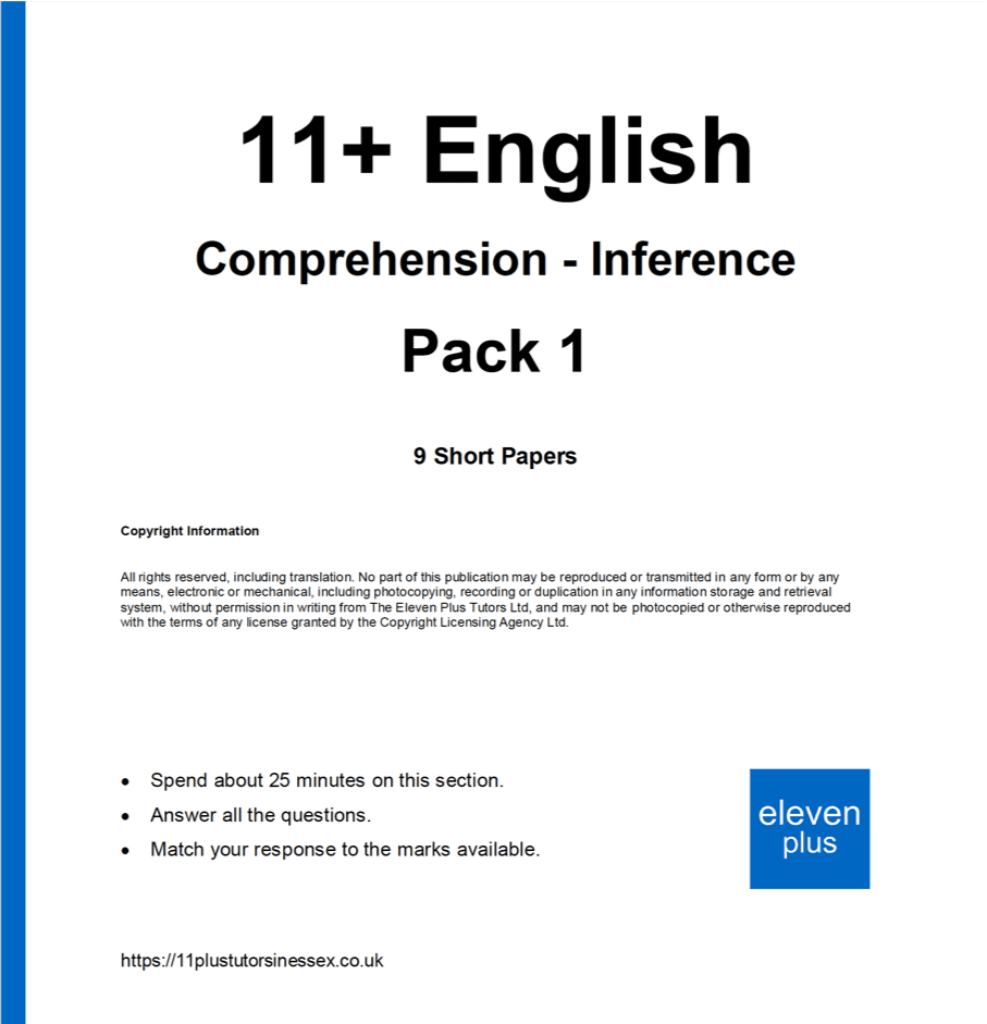 11+ English Short Comprehension Papers – Pack 1 Inference Focused (9 Papers)